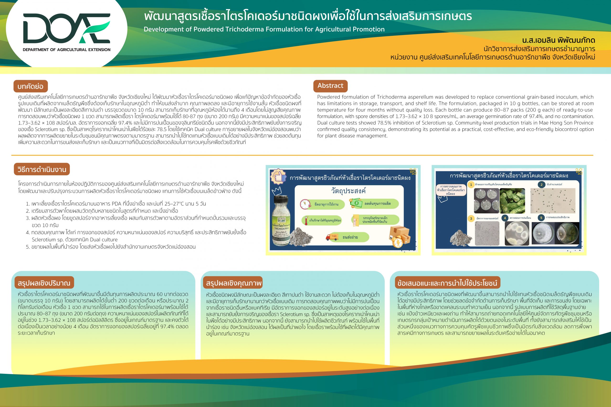 พัฒนาสูตรเชื้อราไตรโคเดอร์มาชนิดผงเพื่อใช้ในการส่งเสริมการเกษตร