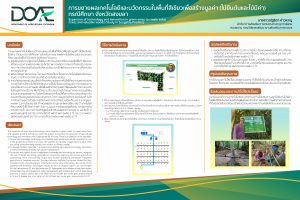 - การประเมินความเหมาะสมของการปลูกข้าวนาปรังเชิงอนุรักษ์และถั่วลิสงเป็นทางเลือกแทนข้าวนาปรังทั่วไปในฤดูแล้ง : กรณีศึกษาตำบลหูทำนบ อำเภอปะคำ จังหวัดบุรีรัมย์